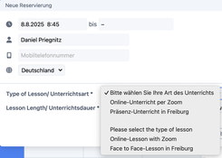 Art des Unterrichts wählen